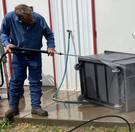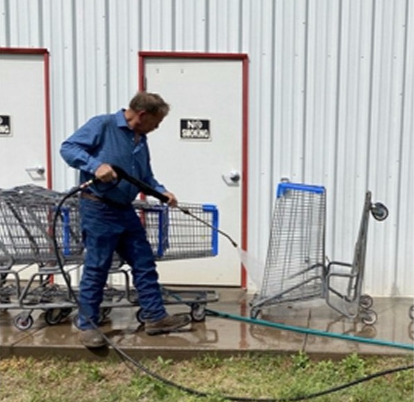 Debris removal of foreign materials from wheels, swivels and bearings; replacement or repair of faulty or broken parts in the basket, including safety seats/belts