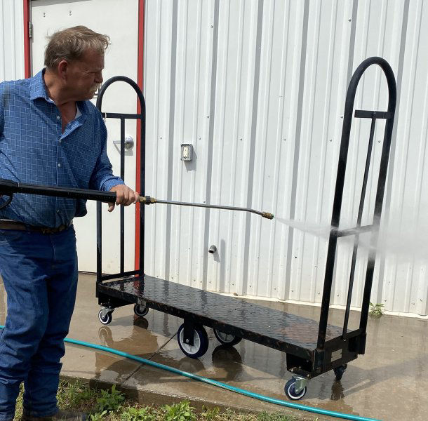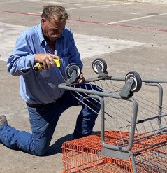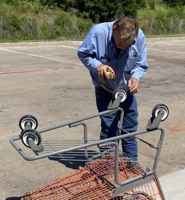 Debris removal of foreign materials from wheels, swivels and bearings; replacement or repair of faulty or broken parts in the basket, including safety seats/belts